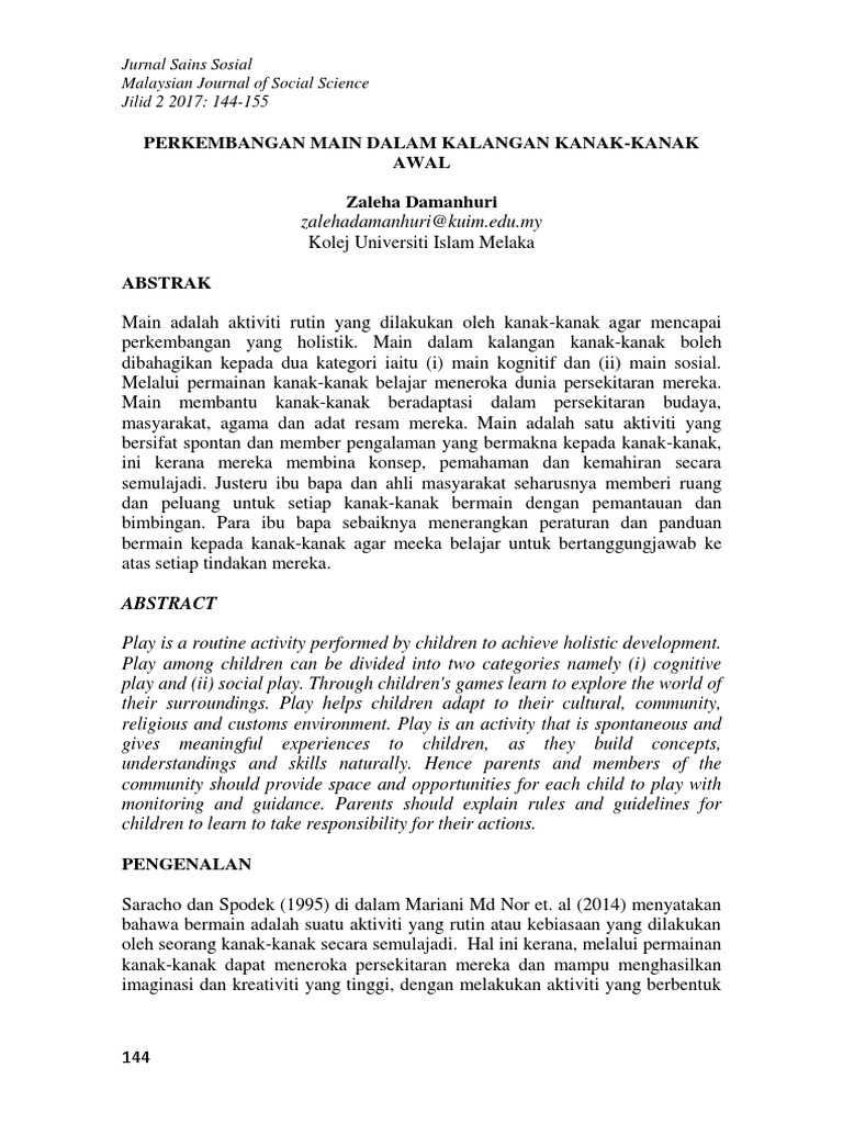 Journal Perkembangan Main Dalam Kalangan Kanak Kanak Awal Pdf
